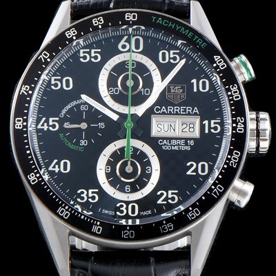 - 블랙 카본 다이얼,아라비안 인덱스,3개의 블랙 카운터 - 폴리싱, 샌드블래스트 및 각면 처리된 야광 아워 및 미닛 핸즈 - 3시방향 날짜창,요일창,퀵 체인지(Quick Change)기능 - 크로노그래프(Chronograph)기능 시간계,30분계,영구초침(Small Seconds) |