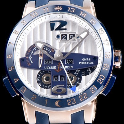 - 실버 다이얼,6,12시 빅사이즈의 아라비안 인덱스 - 날짜,요일, 월, 영구초침 서브다이얼 디스플레이 - 디테일한 스트라잎 타입 기요쉐 다이얼 - 두가지 시간대를 표시해주는 GMT 기능 |