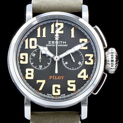 Zenith Pilot Heritage Type 20 Extra Special Ton-Up!!Chronograph Slate grey grained Dial Japan Quartz Movement