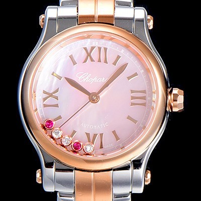 • 미러급 쇼파드여성용 해피스포츠 미니 오토매틱 30미리 레이디스 18K로즈골드 투톤콤비 장식 자게다이얼 핑크 CHO77241 Ⅳ