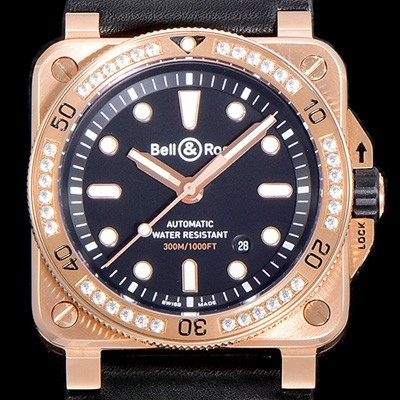 Bell & Ross BR 03-92 Diver 18K Rose Gold 42mm Mens Automatic Black Dial