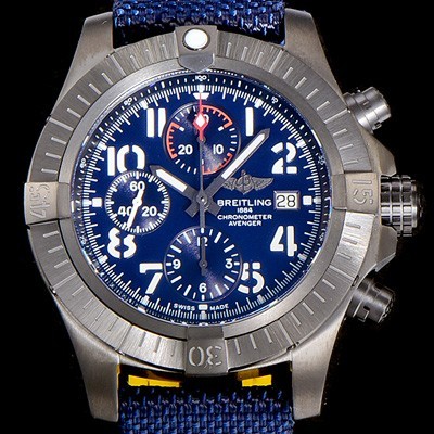 Breitling Super Avenger Night Mission 45mm Chronograph Mens Blue Dial DLC-Coating Titanium Automatic Movement
