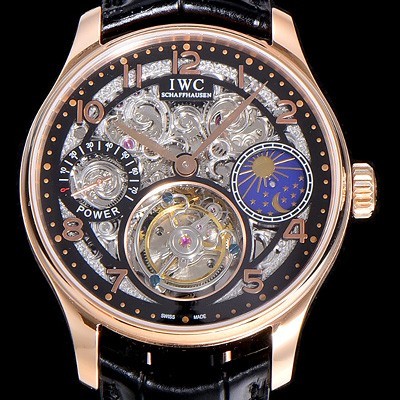미러급 아이더블유씨남성용 포르투기즈 42미리 수동/기계식 투어빌론(뚜르삐옹) 금장시계 스켈래톤 다이얼 블랙다이얼 IWC45296 Ⅳ