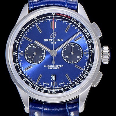 • 미러급 브라이틀링남성용 프리미에르 01 크로노그래프 오토매틱 42mm 블루 다이얼 BRE27933 Ⅳ (+0원)