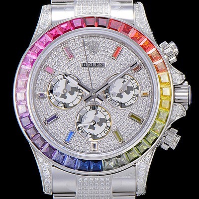 미러급 로렉스남성용 데이토나 오이스터 라인보우 와치 보석/큐빅 세팅 4130타입 무브튜닝 40mm 블랙 다이얼 ROL27036 Ⅳ