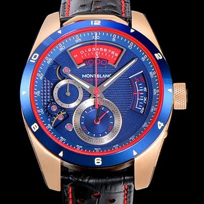 미러급 몽블랑 남성용 타임워커 쿼츠 VK타입 46.4미리 금장 로즈골드 가죽줄 래더스트랩 블루다이얼 MON71165 Ⅳ