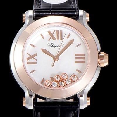 Chopard Happy Sport II TWO-TONE Combe White Diamond Dial Black Leather Ladies Watch White Dail