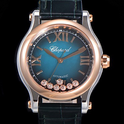 • 미러급 쇼파드 여성용 해피 스포츠 오토매틱 ETA2892-2 타입 36mm 래이디스/금장시계 18K로즈골드 가죽줄 블루다이얼 cho74208 Ⅳ