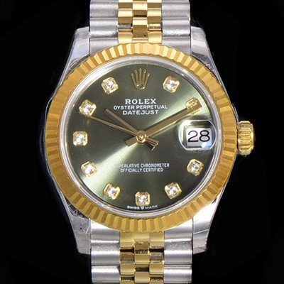 Rolex Date-Just Automatic ETA-2688 31mm Ladies 18K Yellow Green Dial