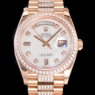 Rolex Day-Date Automatic Cal.3235 TYPE 36mm Mens 18K All Rose Gold Diamond White Dial