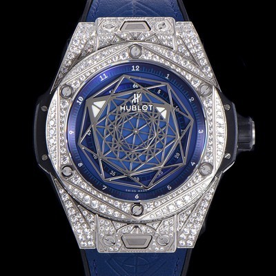 Hublot Mens Big Bang Sang Bleu Titanium Black 45mm Diamond Case Automatic HUB1213 TYPE Blue Dial