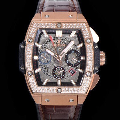 • 미러급 휴블렛 남성용 스피릿 빅뱅 마스터피스 크로노그래프 Hub4700타입 45mm 18K로즈골드/다이아몬드 셋팅 가죽줄 스켈래톤다이얼 hub9351 Ⅳ (+0원)