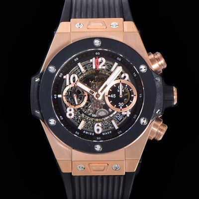 • 미러급 휴블렛 남성용 빅뱅 유니코 45mm 오토매틱 HUB1242 타입 18K 로즈골드/블랙세라믹 베젤 러버줄 스켈래톤 다이얼  hub1129 Ⅳ