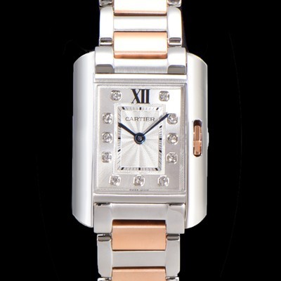 미러급 까르띠에 남여공용 탱크 앙글레즈 미듐/라지 오토매틱/쿼츠 18K 로즈골드 36mm/30mm 메탈줄 물결 실버다이얼 car34019 Ⅳ