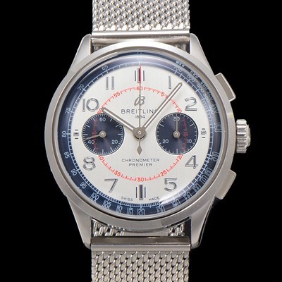 Breitling Men's Premier Chronograph 7750 Type Automatic 42mm Mesh Band White Dial