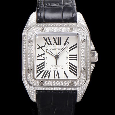 • 미러급 까르띠에 남성용 산토스 100 베스트 에디션 W20073X8 미듐 모델 화이트 골드 풀다이아몬드 셋팅 오토매틱 무브먼트 CAR4015 Ⅳ