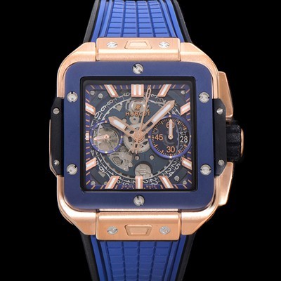 • 미러급 휴블렛 남성용 스퀘어 뱅 유니코 821.OL.5180.RX 스켈레톤 다이얼 티타늄 에디션 18K 로즈골드 42미리 오토매틱 무브먼트 우레탄 러버밴드 hub2133 Ⅳ