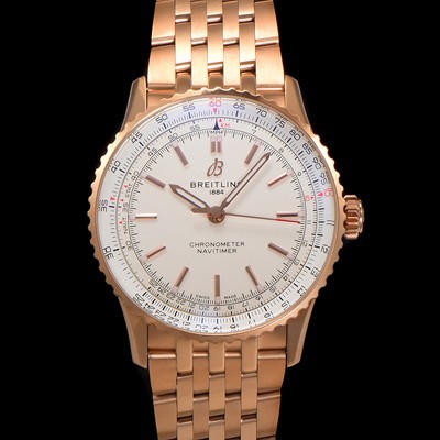 Breitling Men's Navitimer Chronograph 18K Rose Gold Automatic Type 2824 41mm Metal Strap White Dial