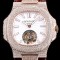 미러급 파텍필립 남성용 노틸러스 뚜르비옹 18K 로즈 골드 최상급쥬얼 다이아몬드 풀 세팅 케이스 화이트 텍스쳐 다이얼 아시안 투어빌론 탑재 PAT0130 Ⅳ